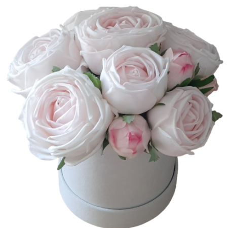 Flower box róże silikonowe jasnoróżowe i różowe w welurowym pudełku M