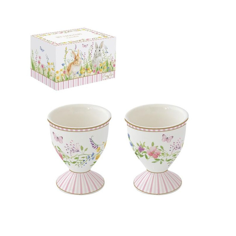 Zestaw kieliszków na jajka z porcelany włoskiej marki Easy Life, ozdobione pięknym motywem nawiązującym do świąt wielkanocnych, który możesz podarować sobie lub bliskiej osobie. Wykonany z najwyższej jakości porcelany, charakteryzującej się elegancją i trwałością. To wyjątkowy element zastawy, który wzbogaci domową kolekcję śniadaniową oraz sprawi radość każdemu, kto go otrzyma.