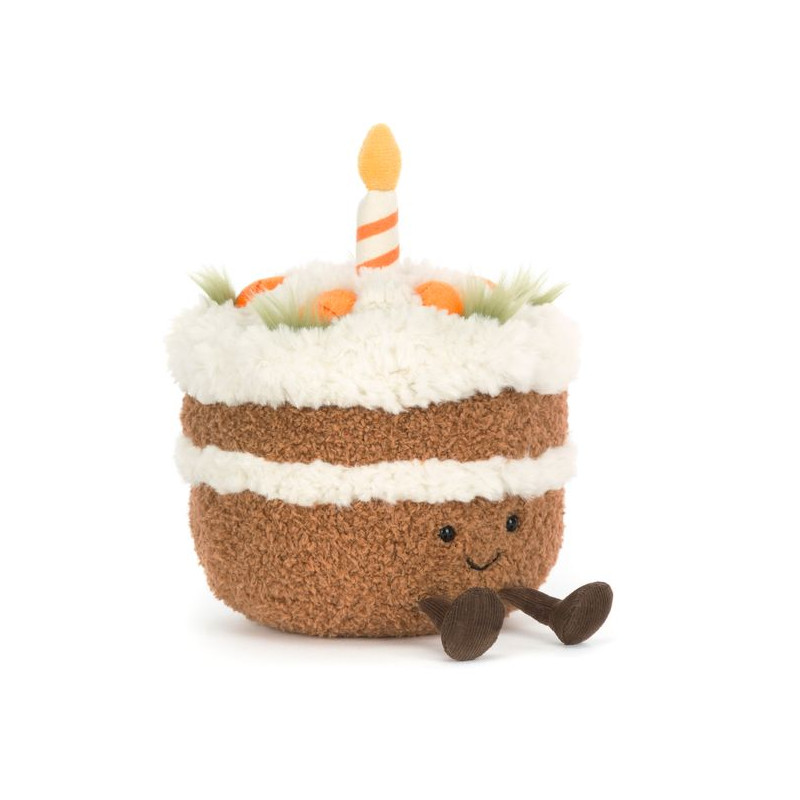 Zabawne Ciasto Marchewkowe marki Jellycat ma bardzo mięciutkie futerko z puszystym kremem, wesołą buźkę i uroczą sterczącą świeczkę oraz sztruksowe stópki. Można się z nim bawić i przytulać. To idealny prezent dla ukochanego malca. Pluszak został uszyty z najwyższej jakości, trwałych i bezpiecznych dla dzieci materiałów.