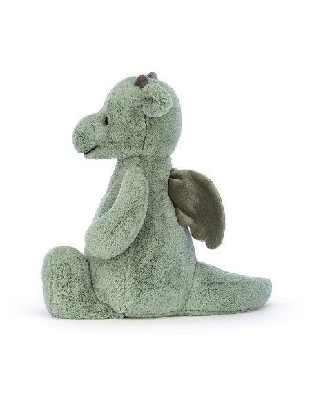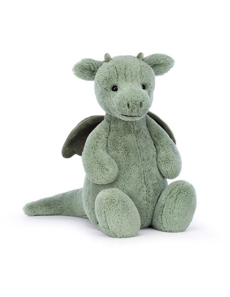 Smok marki Jellycat to bardzo miły i przyjemny w dotyku pluszak. Ten uroczy bajkowy stwór ma wspaniałe futerko kolorze miętowo-szarym, miłą mordkę, urocze skrzydełka, sterczące uszka i różki, przytulaśny brzuszek i łapki oraz długi wspaniały ogon. Można się z nim bawić i przytulać. Pluszak został uszyty z najwyższej jakości, trwałych i bezpiecznych dla dzieci materiałów.