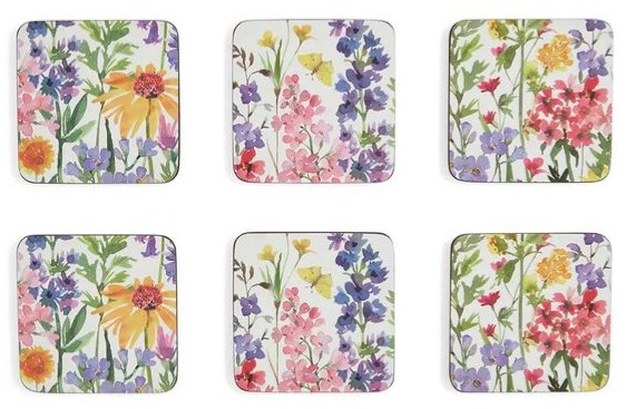 Zestaw sześciu eleganckich i praktycznych podkładek korkowych marki Pimpernel, ozdobionych wyjątkowymi motywami polnych kwiatów i kolorowych motyli. Łączą styl z funkcjonalnością, a dzięki ponadczasowym wzorom i wysokiej jakości wykonaniu stanowią elegancką ozdobę stołu oraz świetny pomysł na prezent.