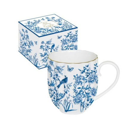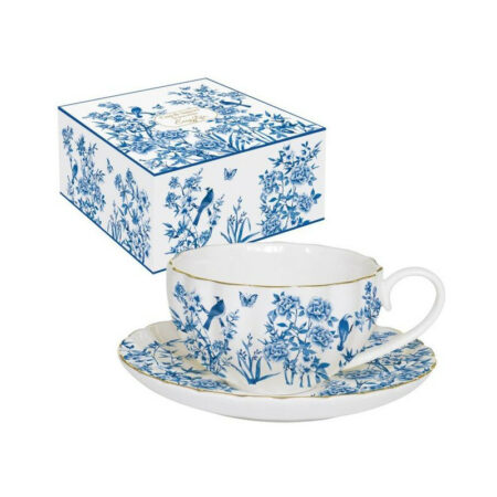 Royal Worcester zestaw 2 kubki porcelanowe i taca ptaszki na gałązce jarzębiny